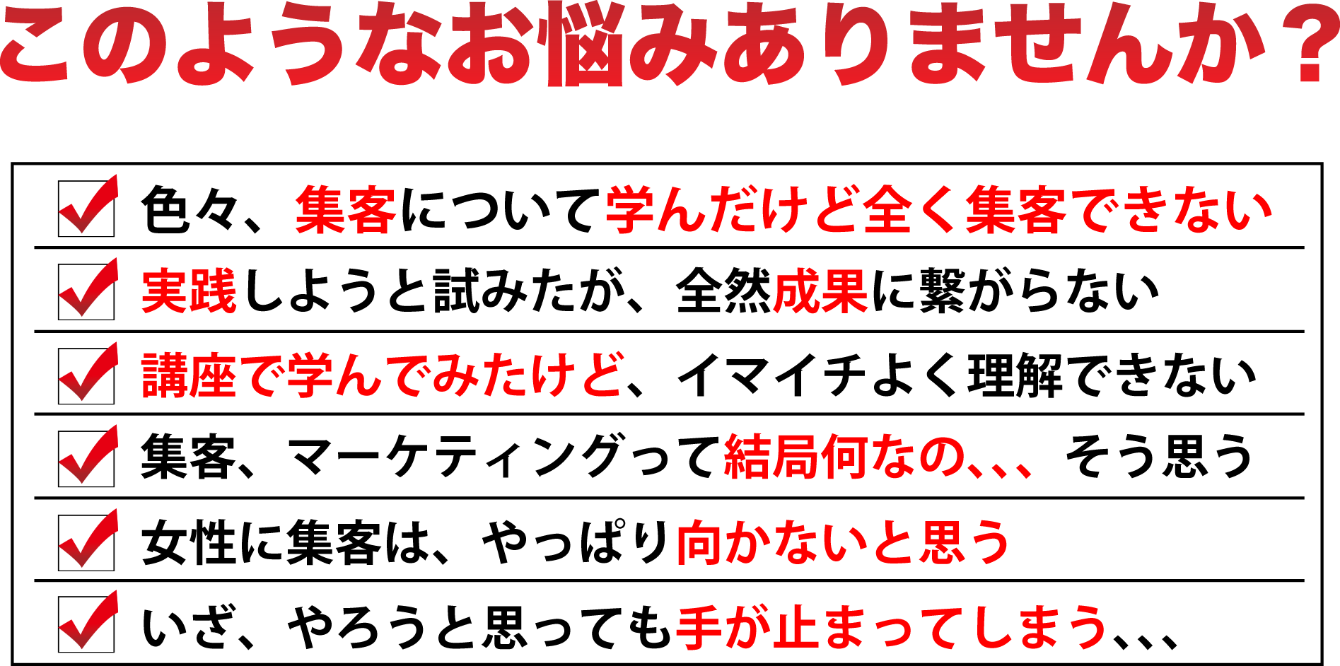 「もう、いいかげん集客の悩みを無くしたい!」